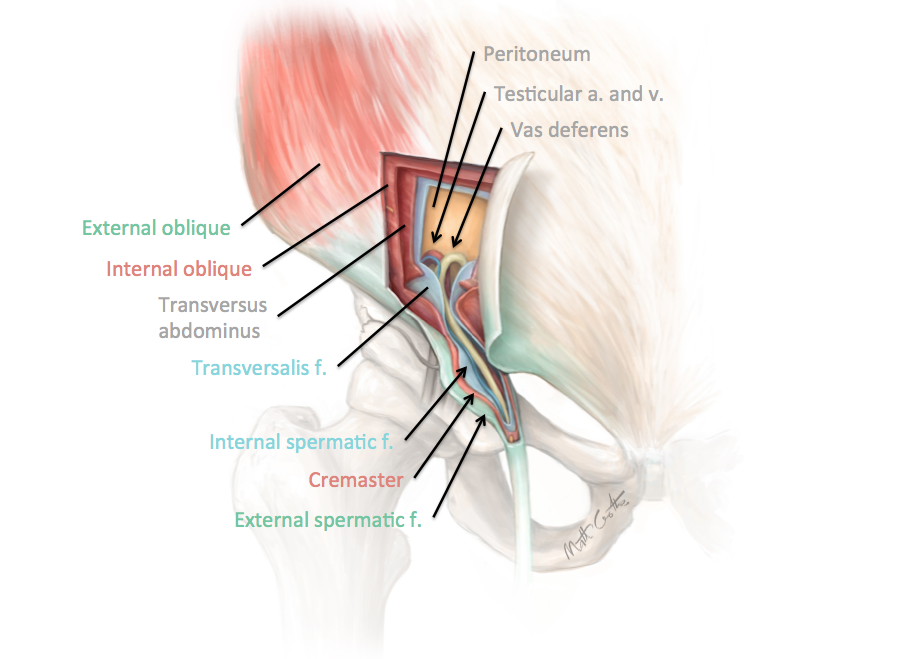 These illustrations are part of an interactive PowerPoint presentation that demonstrated the dissection of the inguinal canal one layer at a time, from both anterior and posterior views.